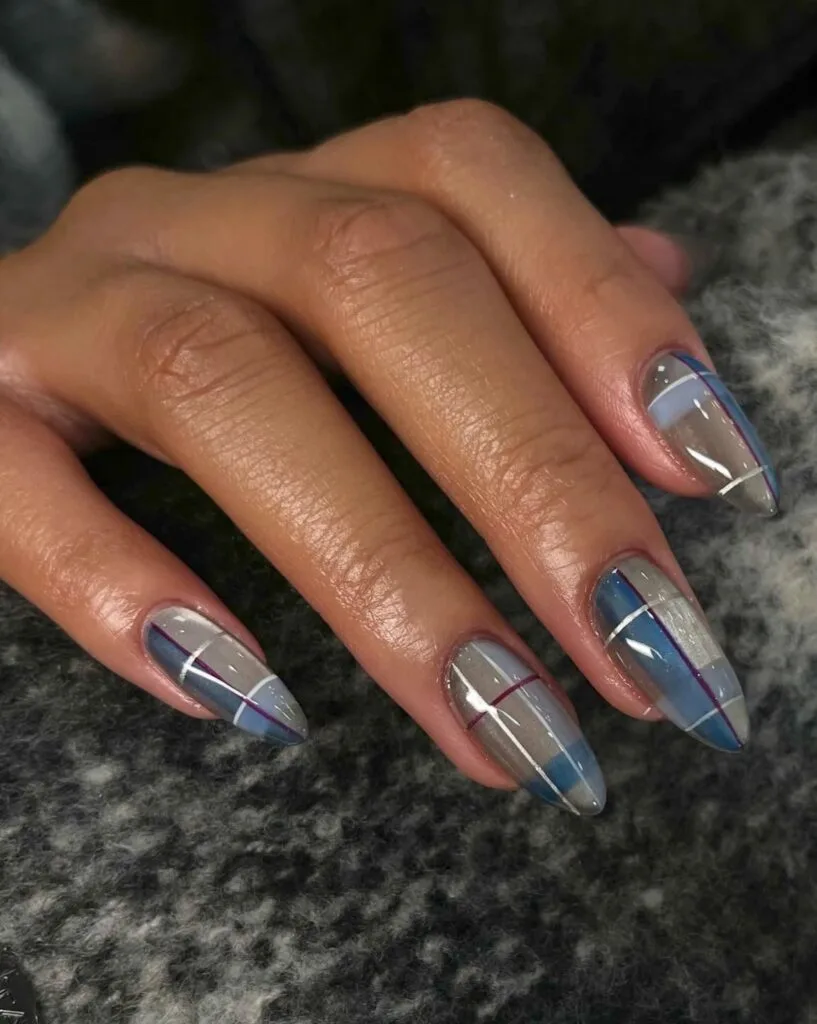 If Gossip Girl had a nail trend, this would be it. Preppy plaid nails are giving private-school-meets-high-fashion energy with clean lines and classic color combos like burgundy, navy, or soft neutrals.