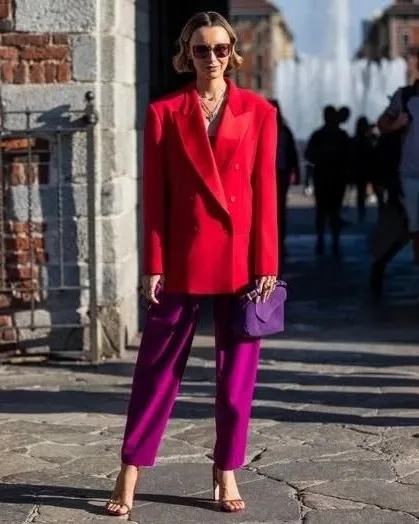 One piece is all you need. A purple knit, a violet leather jacket, even just a bag in plum. Let the rest of the outfit stay neutral and let that single piece do all the talking.